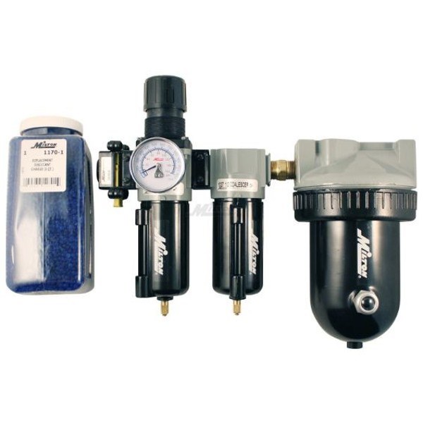 This 1/2" deluxe desiccant dryer system with piggyback filter/regulator will give you constant pressure with clean, oil free dry air to your spray gun or pneumatic tool. Both filters are equipped with automatic overnight drains that will drain once the system drops to less than 5 PSI. This dryer system delivers extremely dry, compressed air as low as -30 degrees Fahrenheit. Includes the initial supply of desiccant. Maximum of 250 PSI.