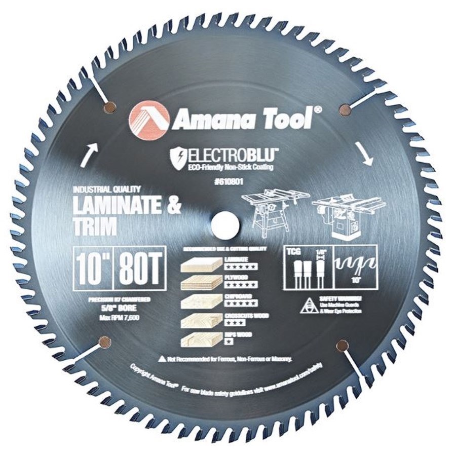 Electro-Blu™ Carbide Tipped Fine Cut-Off and Crosscut 10 Inch Dia x 80T TCG, 10 Deg, 5/8 Bore, Non-Stick Coated