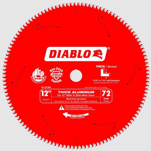 Diablo's next generation Aluminum saw blades are optimized for cutting thin (up to 1/8”), medium (3/32”-1/4”) and thick (3/16”-7/16”) aluminum metals. Featuring the new, specially formulated Diablo TiCo™ Super-Density Micro-Grain Carbide, these radical blades withstand impact, reduce wear, provide clog free cuts and last longer than standard carbide in metal cutting applications. The specially formulated metal cutting carbide teeth feature a Triple Chip Grind (TCG) Tooth Design for clean, burr-free finishes, virtually eliminating any type of rework. Tri-Metal Shock Resistant Brazing allows these Aluminum blades to slice through metal materials while withstanding extreme impact for maximum durability. Diablo's Aluminum saw blade series is ideal for corded and cordless saws when on-the-job cutting non-ferrous metals such as aluminum extrusions, copper pipe, brass plate, etc.