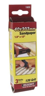 3 PK Premium 120-grit sanding belts, that are designed for heavy duty sanding of plastic, metal, wood, painted surfaces, and fiberglass. Integrated, resin bonding system extends the life of the sanding belt and resists humidity and heat. Runs smoothly in both directions without breaking, due to the bi-directional flush joint.
