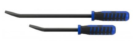 The OTC 8252 2-Piece Handled Pry Bar Set contains both a 12" and 18" pry bar with ergonomic handles. These made in USA pry bars are forged in Owatonna, Minnesota and are covered by OTC's lifetime warranty. Each bar is made from tempered square steel for durability and strength. The dual durometer handle provides a comfortable and secure grip, reducing hand fatigue. A black chrome striking cap will take hammer blows without handle damage, and a polished tip and black oxide finish resists rust and wear during use.