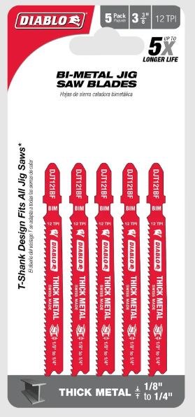 3-3/8" 12 TPI Bi-M T-Shk Jig Saw Blds for Thick Metal 5pk