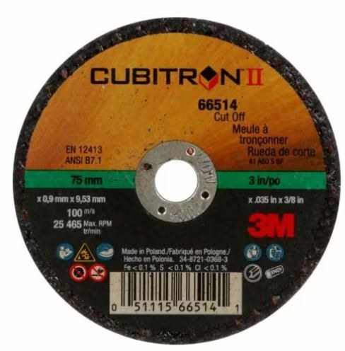 3M™ Cubitron™ II Cut-Off Wheel features 3M Precision Shaped Ceramic Grain to bring you an exceptionally fast-cutting and long-lasting wheel for use on almost all materials, including stainless steel, mild steel, and aerospace alloys. This cut-off wheel surpasses 3M™ High Performance wheels in both cut and life to deliver significant gains in productivity.