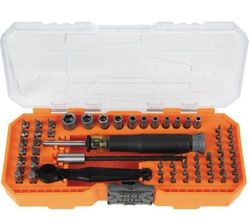 The Precision Ratchet and Driver System provides a micro-ratchet and magnetic adjustable precision screwdriver to maximize access for various applications. The driver system case compactly houses 60 bits for ideal versatility to best equip you for any job. The case connects to other Klein driver cases, making this the perfect precision pairing with your other driver sets.