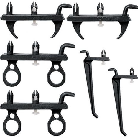 These nylon holders stay put, allowing you to take tools down without having holders fall off, and they're virtually unbreakable, too! Six-piece Large Pegs Variety Pack includes two 3-5/8" straight holders (Style A), two dual screwdriver holders (Style F) and two pliers holders (Style G). All feature easy, tool-free mounting. To remove use a Phillips screwdriver. Fit 1/4" pegboard holes.
