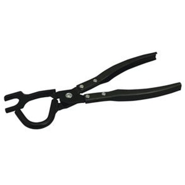 The exhaust plier works on all import and domestic car and truck exhaust systems that use the rubber hanger supports. Simply squeeze the plier handles to force the bracket from the rubber support.