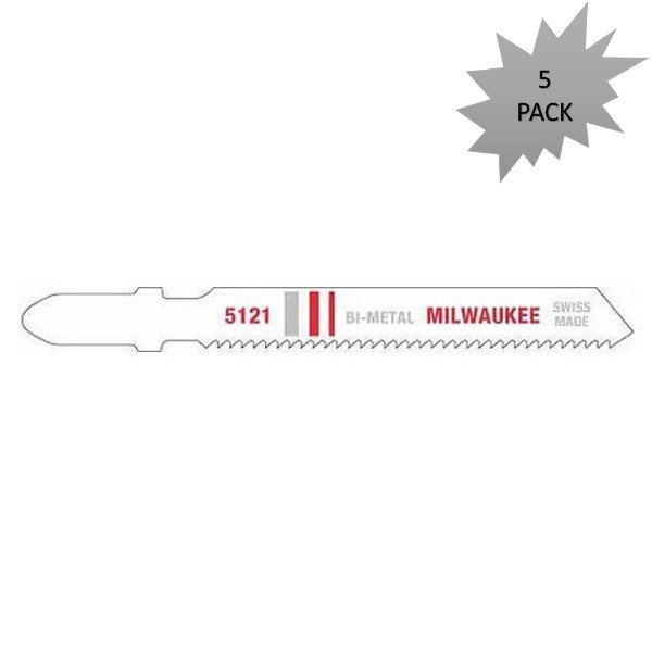 Get professional-grade performance and longer blade life with the Milwaukee® 3" 18 TPI Bi-Metal Jig Saw Blade - T-Shank (5-Pack). These heavy-duty blades last longer than high-speed steel or carbon blades, combining the strength to cut metal with the durability to withstand impacts without breaking. With Milwaukee’s attention to blade material, tooth shape and sharpness, the jig saw blades produce clean, fast cuts in metal over 1/8" thick. The T-shank allows for quick installation. Use with Milwaukee jig saw models 6266-6, 6276-6, 6267-20, 6267-21 and other popular brands.