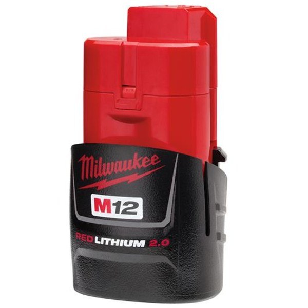 Delivers up to 2X more runtime, 20% more power and 2X more recharges than standard lithium-ion batteries.The M12 REDLITHIUM™ 2.0 Compact Battery Pack features superior pack construction, electronics and performance to deliver more work per charge and more work over pack life than any battery on the market. It offers 2.0 amp-hours of runtime. With Milwaukee durability built into each pack, this battery runs cooler and performs in climates below 0°F/-18°C. Its compact design fits in tight work spaces and reduces user fatigue.