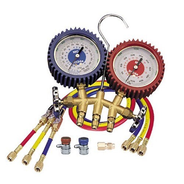 Product Features For R-12 and R-134a Manual shut off valves Manual style, high quality couplers Large 2-1/2in. gauges with gauge protectors Includes (3) 72in. barrier hoses