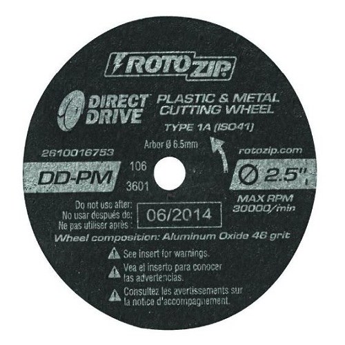 The Rotozip DD-PM5 plastic and metal wheel 5-pack cuts most types of metal and plastic. RotoZip Connect interface for quick attachment and adjustment. 3/4 cutting depth for greater versatility. For use with Rotozip DD1 direct drive.
