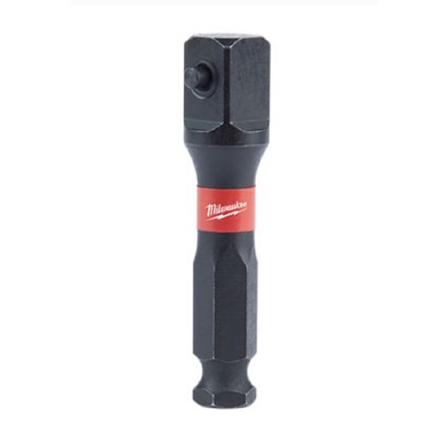 The Milwaukee Shockwave(tm) Lineman's 7/16" Hex to 1/2" Square Adapter is the most durable adapter on the market and it's pin detent allows for better retention to the socket. The adapter features an Optimized Shockzone(tm) that absorbs peak torque and prevents the adapter from breaking, providing up to 30X life. The adapter is made from Custom Alloy76(tm) Steel, which maximizes it's resistance to wear and shock. The 7/16" hex shanks allows the adapter to lock into all 7/16" quick connect chucks.