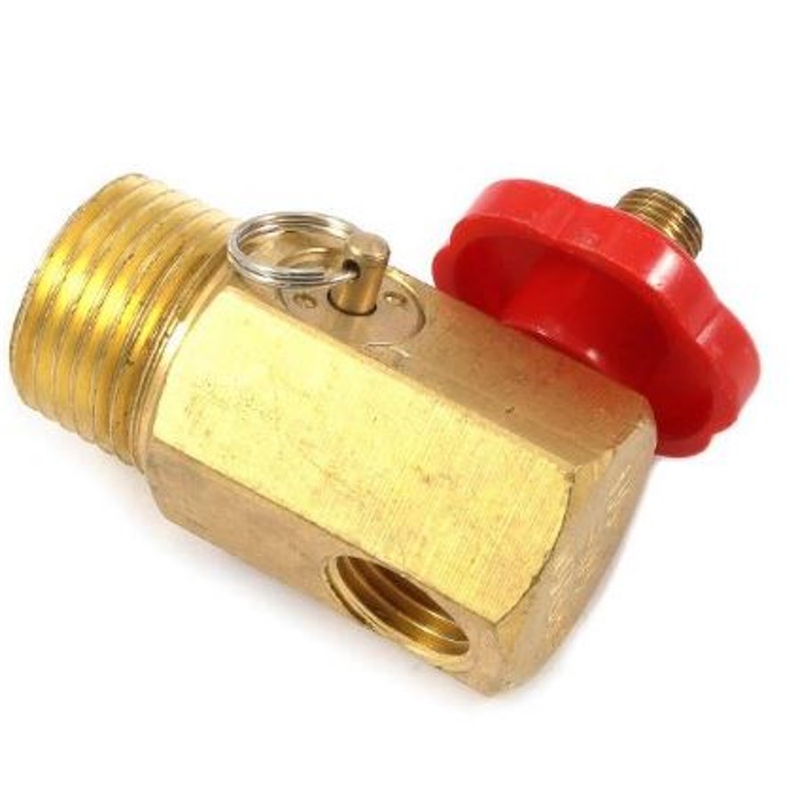 Air Line Accessories. Carry tank manifold with 1/2" male national pipe thread (NPT) inlet and 1/4" female NPT outlet. Gauge port is 1/4" female NPT. Safety valve: 150 PSI.