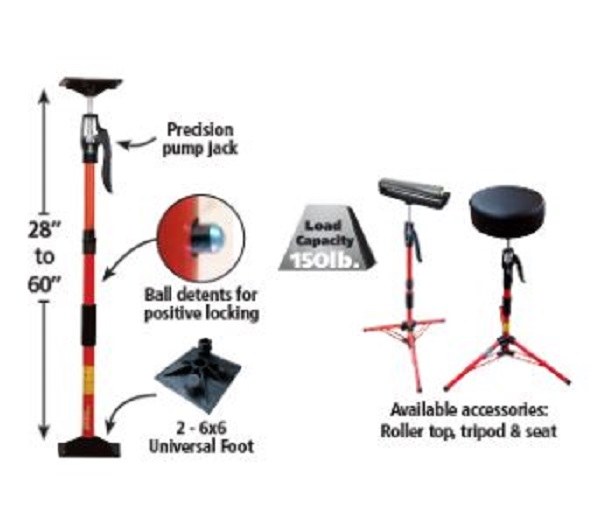 •70 lb. load capacity. •Action lever for secure pressure. •Fully articulating head and foot. •Quick release lever. •Now comes standard with universal feet and a neoprene foam grip •Has a range of 16.5 to 22.8 inches