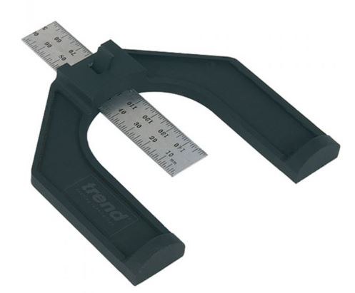 Metal rule depth gauge helps set the height of router bits and saw blades with greater accuracy.