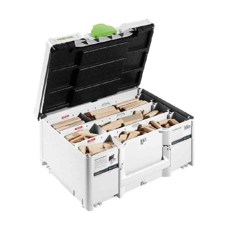 The special shape in combination with expanding glue pockets and longitudinal grooves gives the dowels a secure grip. For absolutely twist-proof connections and maximum stability. Added to this is significantly faster processing: The first dowel hole is aligned with extreme ease and routed accurately using flip stops. It immediately secures the workpieces that are to be joined so that they are exact and flush with the edge. The DOMINO system even tolerates smaller imprecisions in the other dowel holes.