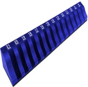Magna-Wrench™ Holder: Organizes (14) SAE or Metric wrenches. Uses high energy magnets to securely hold a variety of wrenches. Accommodates 8mm thru 21mm wrench sizes. Dimensions: 12 x 2 x 2