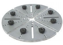 With a massive 4-1/2" diameter body, the Stronghold chuck is perfect for heavy turnings that require maximum stability and gripping power. It's key-operated, so one-handed adjustments are simple and fast. A 5/1 ratio ensures solid holding power, while the patented over-extension prevention system ensures that the base jaws will never come loose during operation. A wide range of accessory jaws are available to cover all your turning requirements. The #3 Jaws have the mass and size necessary for large bowls and vases. The profiled jaws provide maximum gripping power with minimal damage to the piece. Spigot Jaws are machined long and deep for a better grip on smaller parts. Both outside and inside surfaces of the jaws are serrated to grip the work piece. The Jumbo and Mega-Jumbo Jaws are solid machined aluminum plates. Their unique combination of slots and tapped holes accept rubber grippers for holding an infinite number of round, oval or square shapes. Choose a separate taper-lock adapter from the related products below.