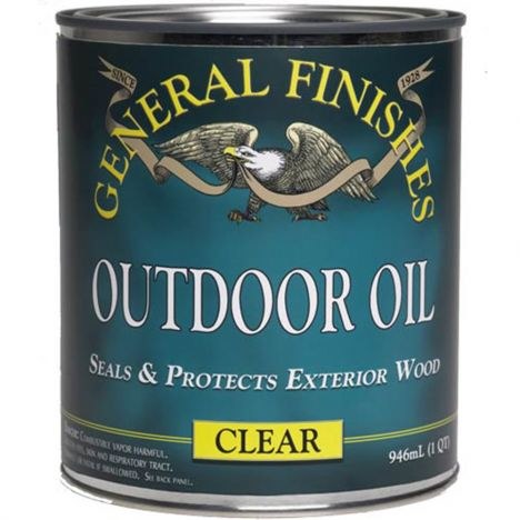 General Finishes Outdoor Oil is an exterior-rated penetrating linseed oil. It contains UV stabilizers, mildew prohibitors and twice the oil contained in competing brands. We highly recommend GF Outdoor Oil for all outdoor wood projects, particularly wood furniture. It can be used by itself, over any stain, and on pressure-treated wood.