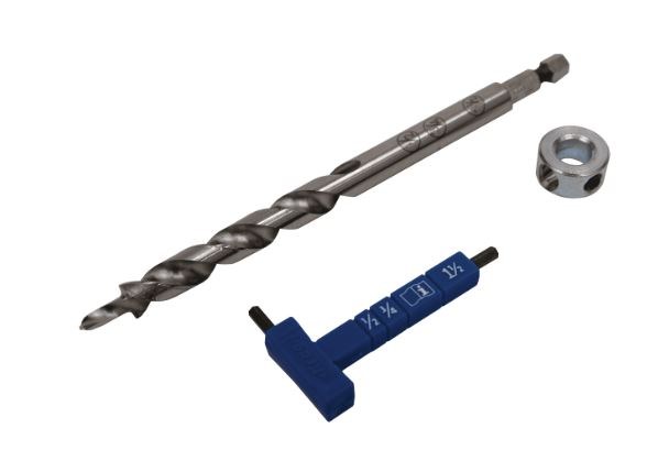 EASY-SET POCKET-HOLE DRILL BIT WITH STOP COLLAR & GUAGE/HEX WRENCH