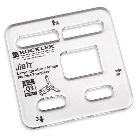 Insert this template into the JIG IT Hinge Mortising System (#58822, sold separately) to rout precise hinge mortises with smooth, hinge-hugging contours. With the easy setup and routing provided by this system, frustrating mistakes will be a thing of the past. Clear acrylic for easy visibility. Laser etchings ensure foolproof setup. The Q3 Large Quadrant Hinge Mortise Template should be used to rout mortises for Large Solid Brass Quadrant Hinges (#46807 and #24300, sold separately)