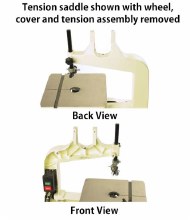 Designed to fit most 14" cast frame saws regardless of riser block configuration. See pictures for tension saddle illustration, ribs and webbing do not have to be identical to picture, just the tension saddle where the Quick Release fits. This product does not fit steel frame saws.