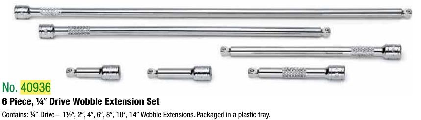 1/4" Drive Wobble Extensions - 1'1/2", 2", 4", 6", 10", 14"